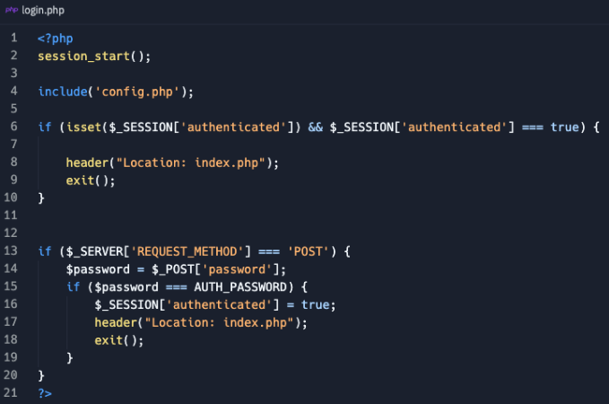 Finding code like this can be extremely valuable for a number of reasons, but chief among them is understanding how the site works. I honestly don't know if this site ever reared its ugly head in the "real world", but if it did, then this would be an interesting find in the "config.php" file as you can see "AUTH_PASSWORD" and "REQUEST_PASSWORD" values.