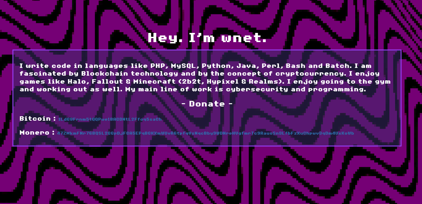 Upon further analysis, I noted that the "minero" repo showed a cat icon which redirected me to an account for "wnet". This repo, among other things, contained the code for the "wnet.studio" site and gave a glimpse into the "Socials" and "Projects" pages.